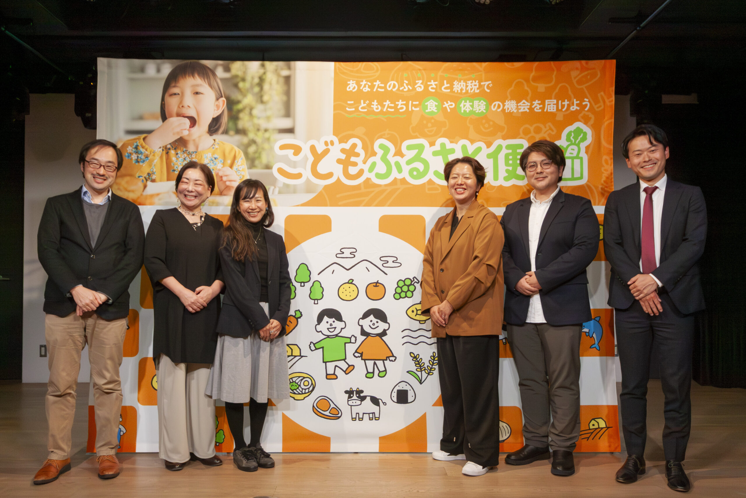 発表会は、「こどもふるさと便」を運営するネッスー株式会社様が開催。ふるさと納税を活用し、地域の特産品をこども食堂やひとり親家庭、難病と向き合うこどもたちへ届け、食の体験や機会を創出する「こどもふるさと便」の新たな展開について発表を行いました。