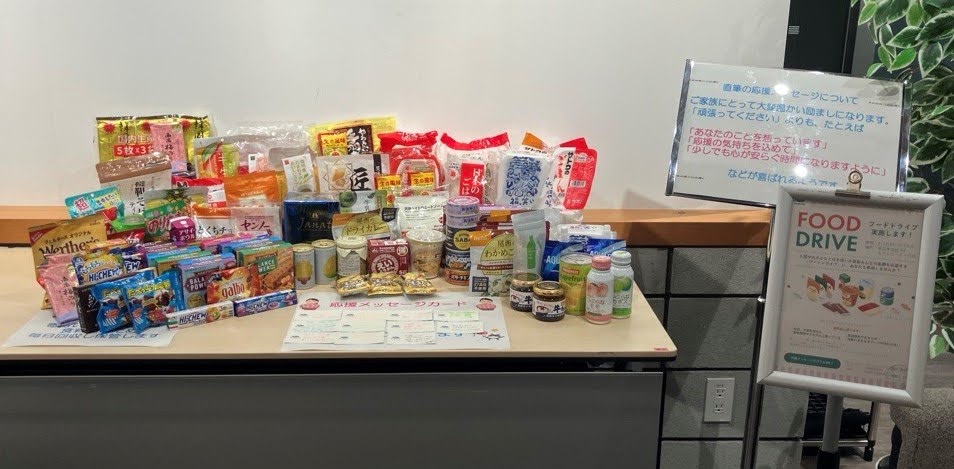 また、講演後10日間にわたり本社内に設置されたフードドライブコーナーでは、ご自宅で眠っている未使用・未開封で賞味期限の残っている食料品とともに、心のこもった応援メッセージをいただきました。