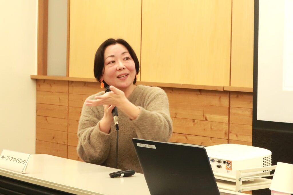 NPOサポートセンター 代表理事・多摩大学 経営情報学部 教授の松本 祐一さんの講義「NPOの運営と戦略づくり」のゲスト講師として、光原から付き添い入院をめぐる社会課題や、キープ・スマイリングの取り組みについて紹介しました。