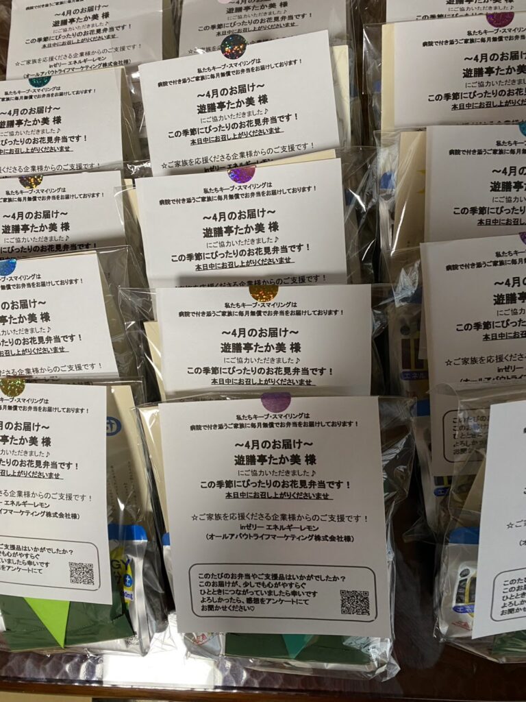 2026年4月9日、佐賀大学医学部附属病院の小児病棟へお弁当と応援の品をお届けしました。