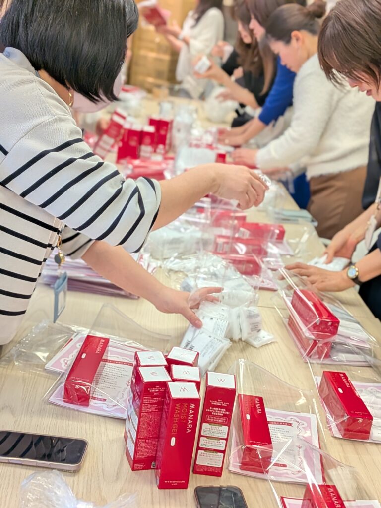 このご縁から、自社製品「MANARA MOIST WASH GEL」をご寄付いただくことに。